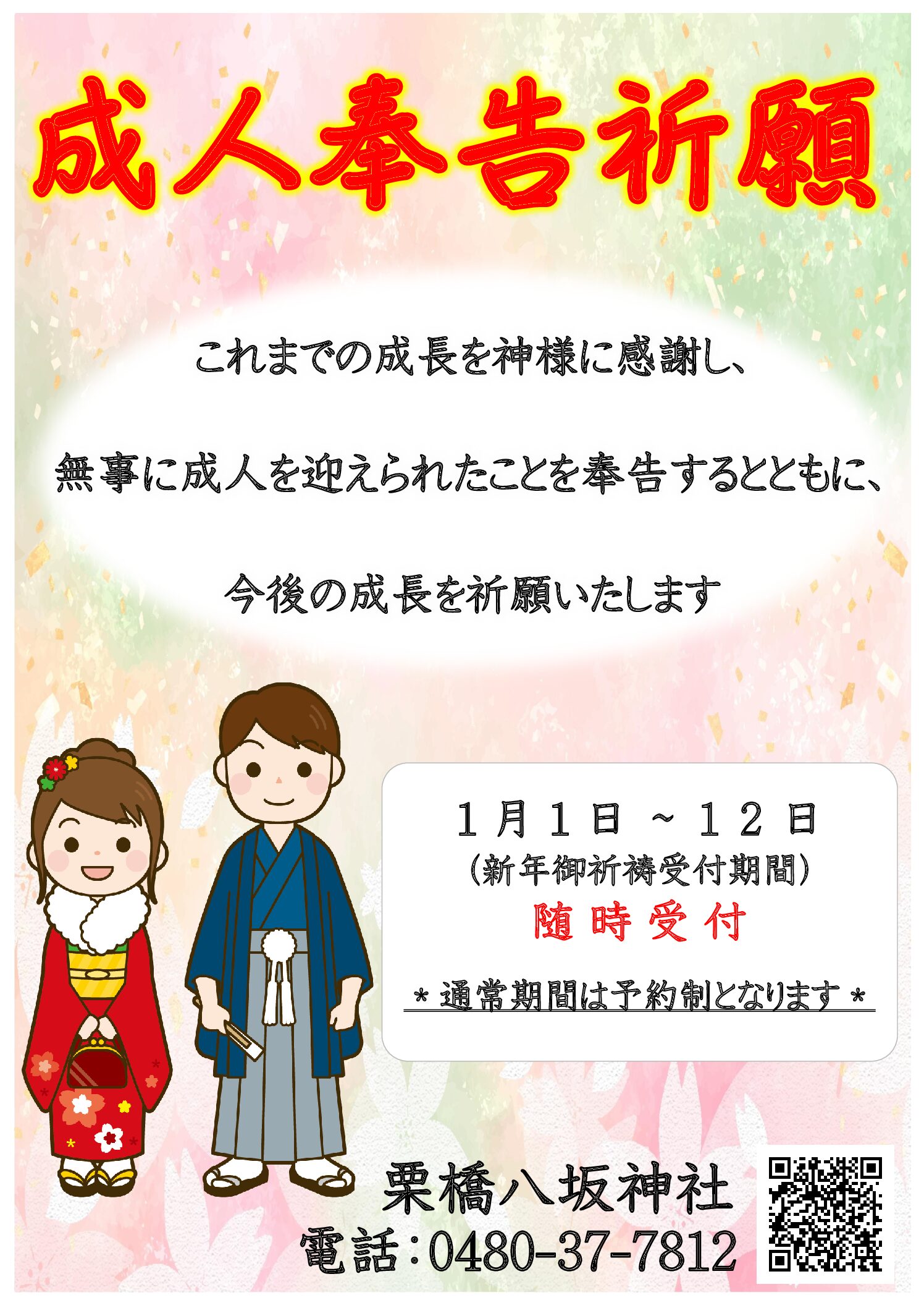 今後のご加護と健やかな歩みをお祈りする「成人奉告祈願」を承っております。